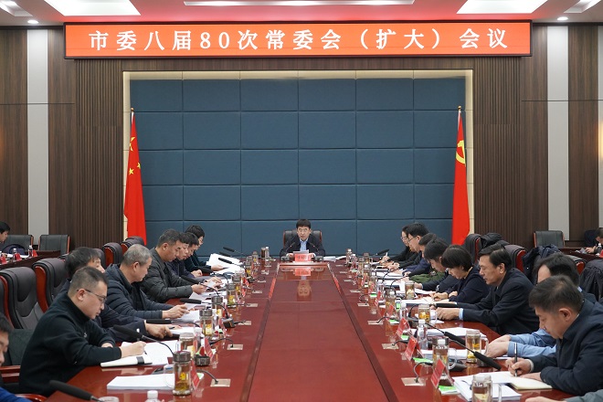 12月9日,市委书记侯绍波主持召开市委八届80次常委会(扩大)会议,会议传达学习习近平总书记重要讲话重要指示批示精神,研究贯彻落实意见;听取全市深化改革工作情况汇报;听取市纪委监委工作情况汇报;听取市法院党组工作情况和落实全面从严治党主体责任情况汇报;听取市检察院党组工作情况和落实全面从严治党主体责任情况汇报;听取群团组织工作情况汇报,研究部署相关工作;传达《中共中央关于坚持党管武装加强新时代人民武装工作的意见》文件精神及贯彻落实意见;听取2024年全市武装工作情况汇报。